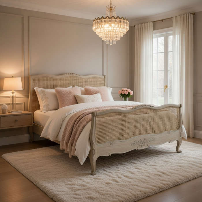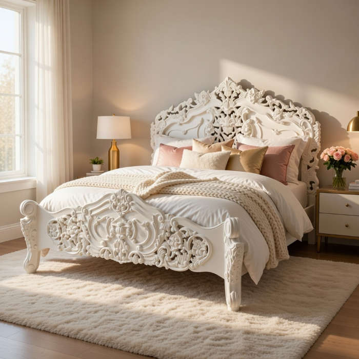 The Rococo bedroom is of course french design at it’s most extravagant. If you are comfortable with a bit of flamboyance then a Rococo bed is definitely for you with all the hand carved detail and variety of colours to choose from.