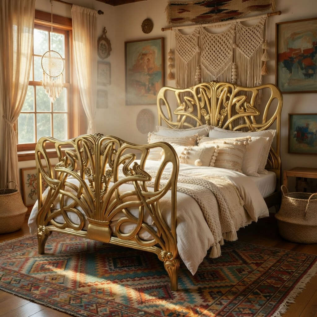 Art Nouveau Cheri Gold Bed