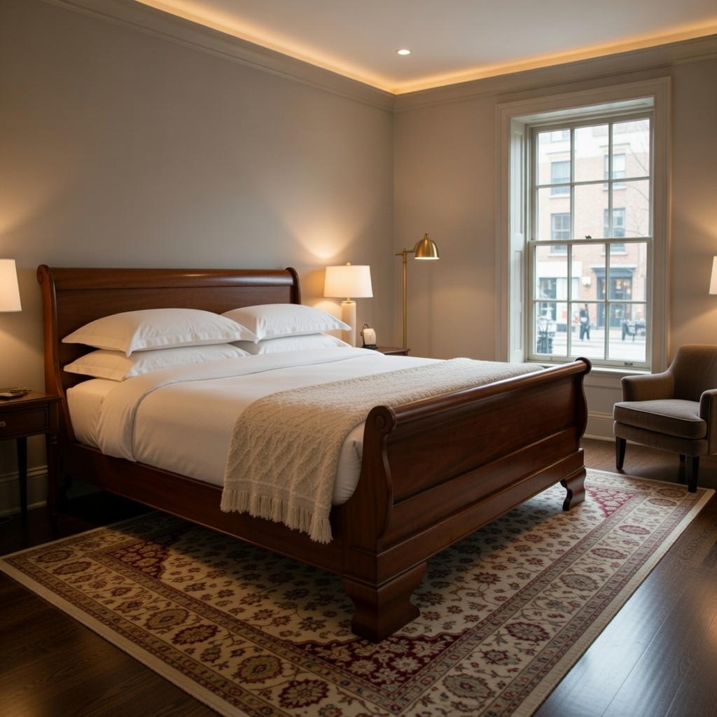 This piece of furniture is made from mahogany. The construction is very sturdy with traditional joints and fixings. This bed goes particularly well with our mahogany sleigh bedsides and chest of drawers.